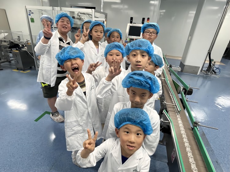 緊接著孩子們來到了小容量注射劑1號車間。在進入生產(chǎn)區(qū)的剎那,透過巨大的玻璃展窗,孩子們發(fā)出陣陣驚嘆——儲水罐猶如高大威猛的巨人,佇立在光亮整潔的制水間內(nèi)。注射液的誕生之路便從這里開始。在滅菌間內(nèi),孩子們對巨大的鐵柜子充滿了好奇,它就是飽和蒸汽滅菌柜,是藥支“蒸桑拿”的地方。孩子們在這里學習到了溫度與微生物之間的親密關(guān)系。在燈檢間內(nèi),巨大的星輪圓盤與隊列整齊的藥支們訴說著質(zhì)量第一的故事。最后,在包裝間內(nèi),從分托入托機到裝箱機,藥支們陸續(xù)穿上漂亮的服裝,成功誕生為完整的產(chǎn)品。孩子們了解到,每一支注射劑的誕生,都是科技與智慧的結(jié)晶,是保護人類健康的超級英雄。
